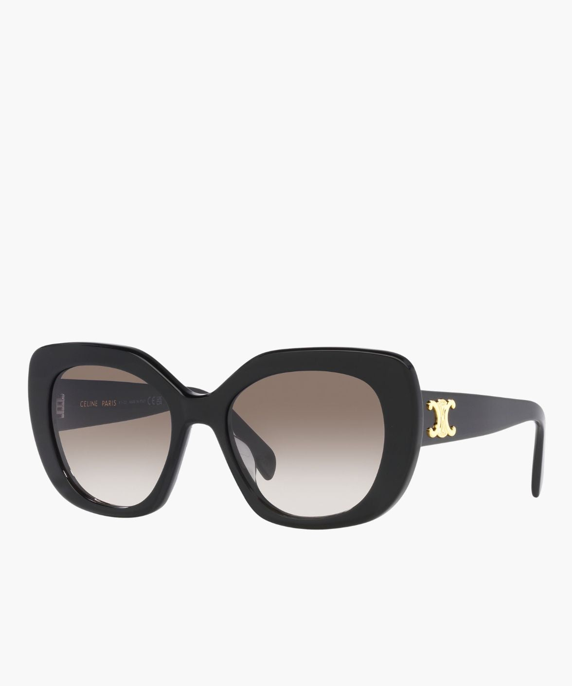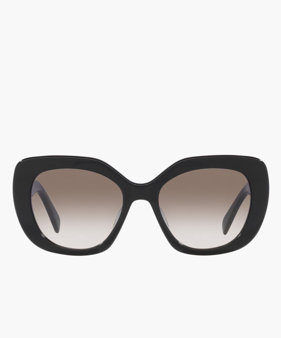 Crafted in Italy from glossy black acetate, this full-rim cat-eye silhouette sculpts the face with confident lift and definition. The gradient brown lenses soften the structure, adding warmth and dimension while providing 100% UV protection for daily wear.