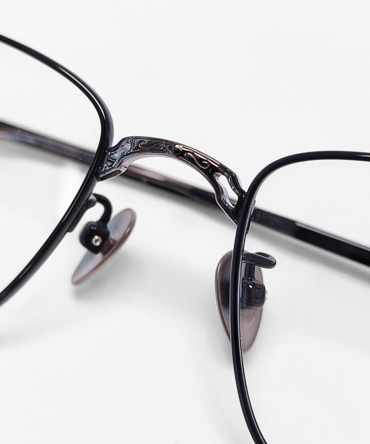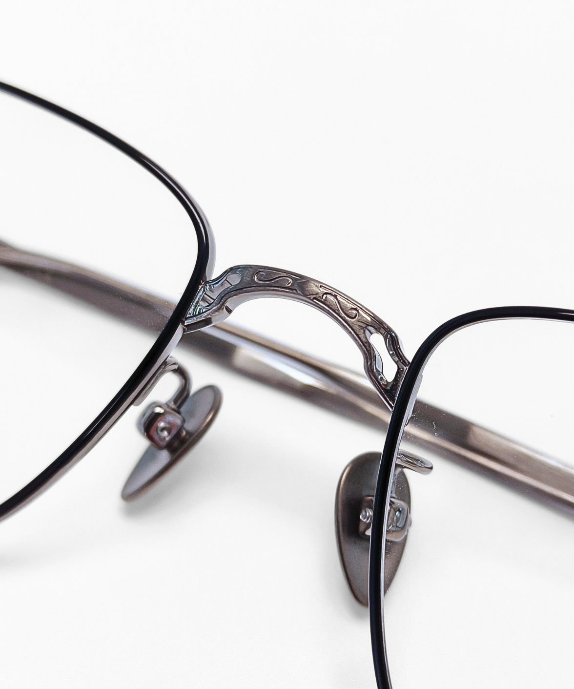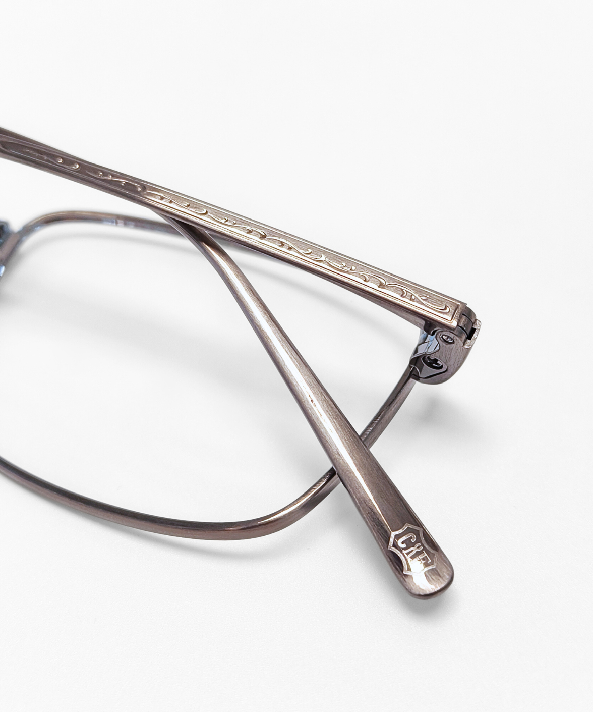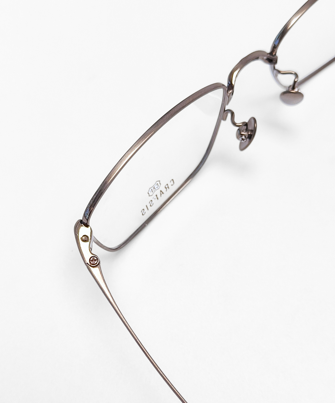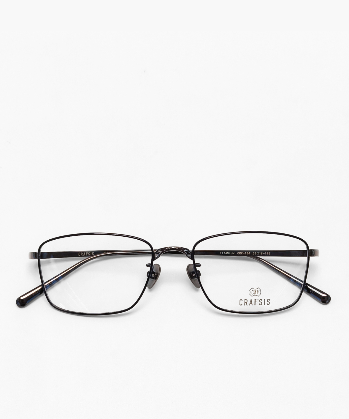 CRAFTSIS CRF-134 is a meticulously handcrafted rectangular frame in premium titanium. The full-rim design combines classic elegance with contemporary style, featuring engraved motifs on the bridge and temples that exude understated luxury. Available in dark grey/black (C4) and black/silver (C6), the contrasting colors on the rims and temples add a refined, eye-catching touch. Equipped with solid titanium nose pads for comfort and stability, CRF-134 is perfect for both professional and casual settings. The Crafsis logo is precisely laser-engraved on the tip of the left temple, highlighting its authentic craftsmanship.