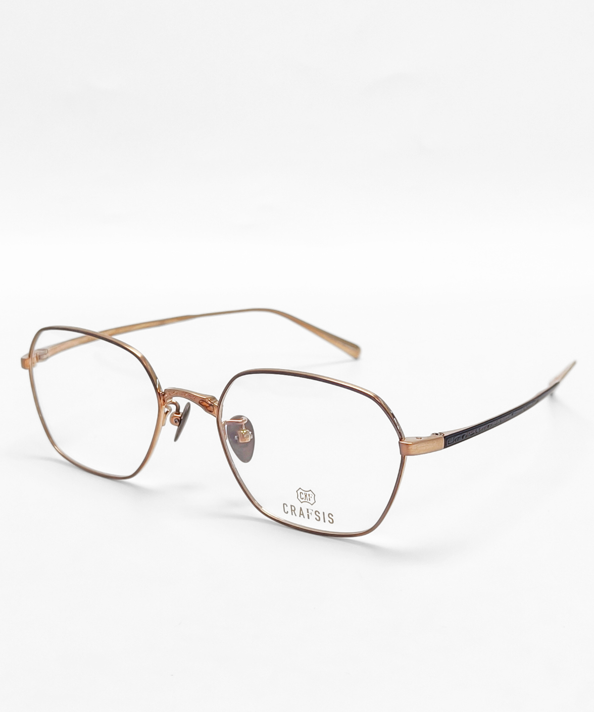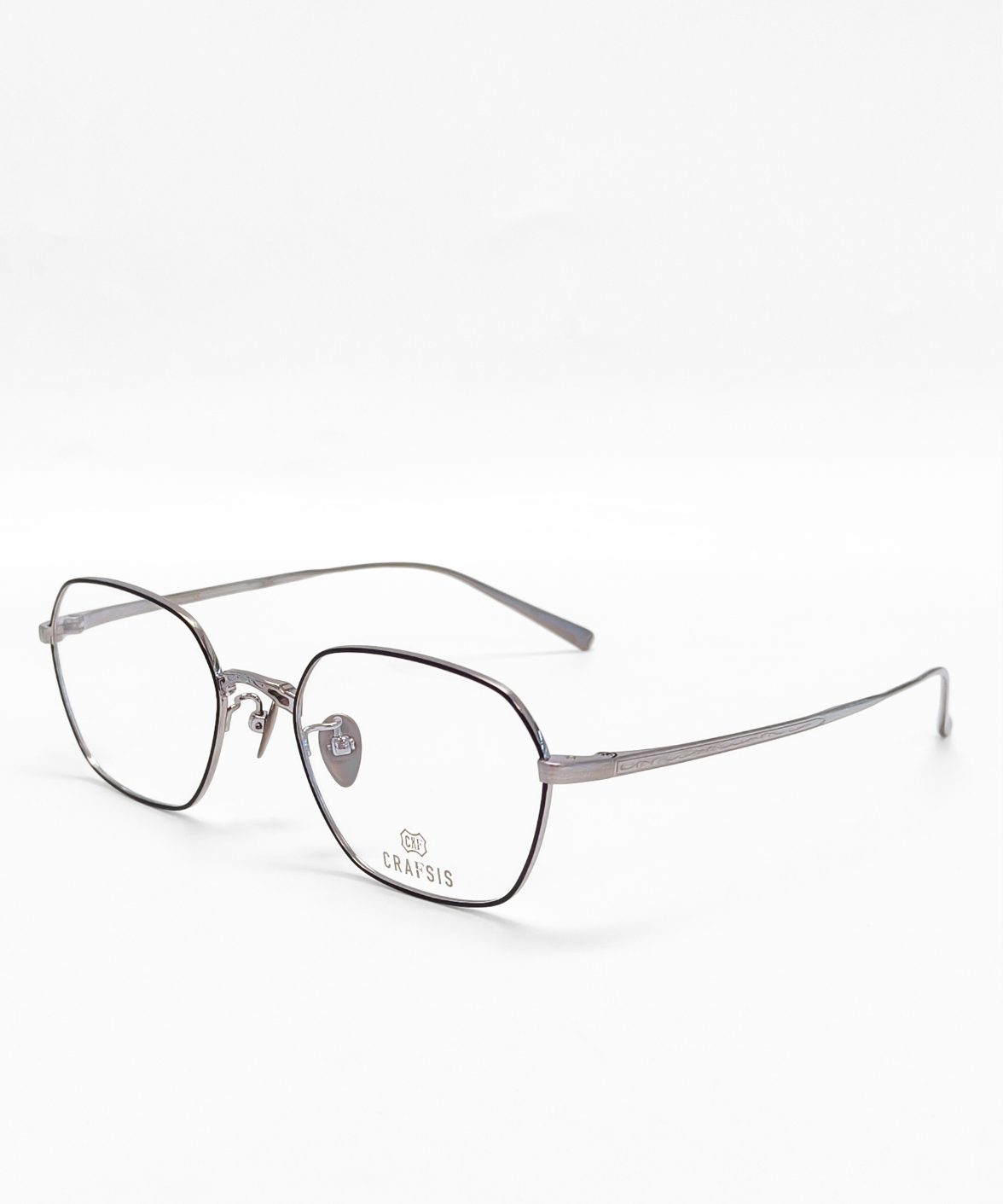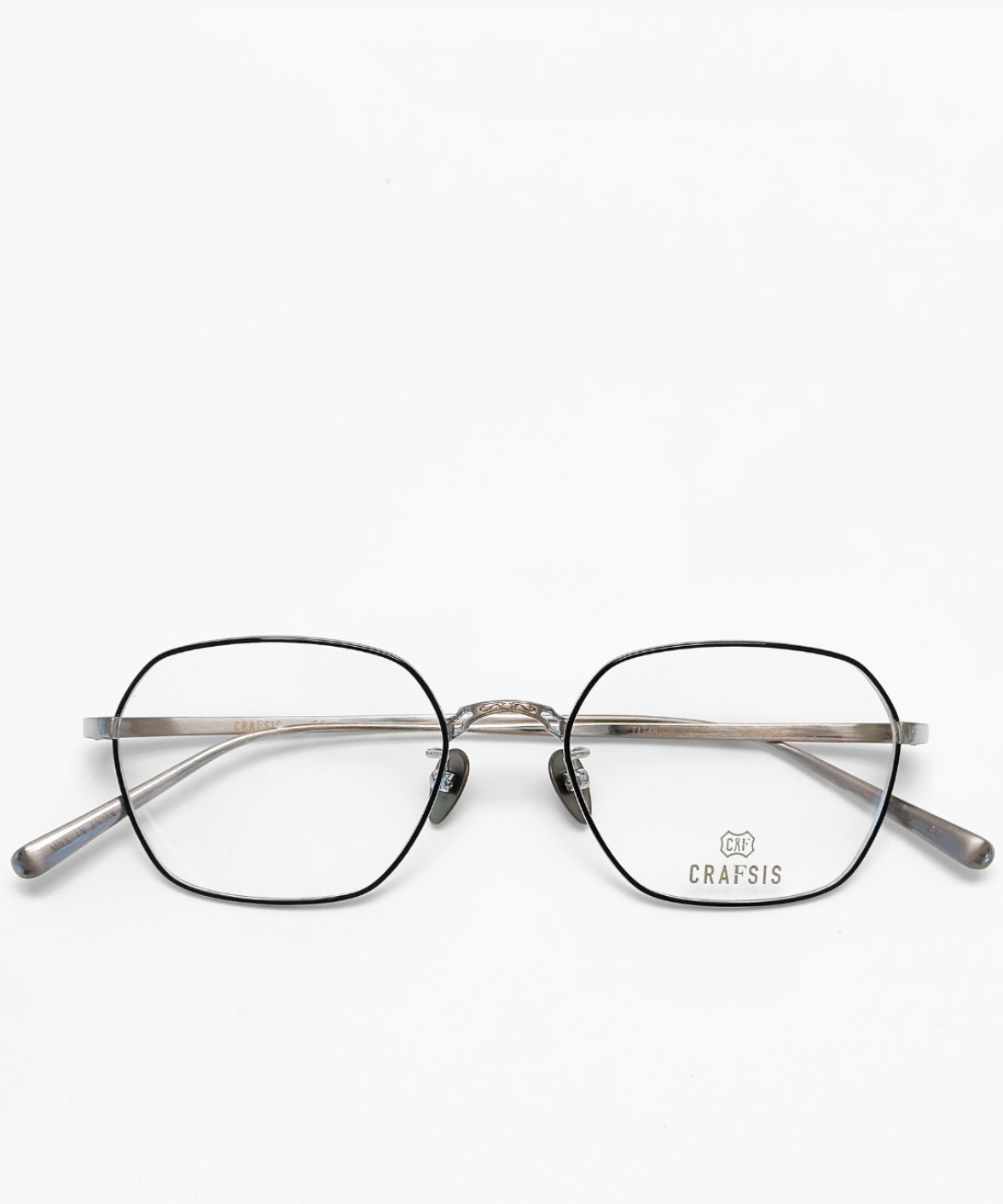 CRAFTSIS CRF-135 is a Japanese handcrafted geometric eyeglass frame in premium titanium. The hexagonal full-rim design combines originality with intelligent detailing, featuring classical engraved motifs on the bridge and temples that exude luxury. Available in hairline gold (C2) and black/silver (C6), the bicolor front and temples add a refined, sophisticated touch. Solid titanium nose pads ensure all-day comfort and stability, while the Crafsis logo is laser-engraved on the tip of the left temple, highlighting its exceptional craftsmanship.