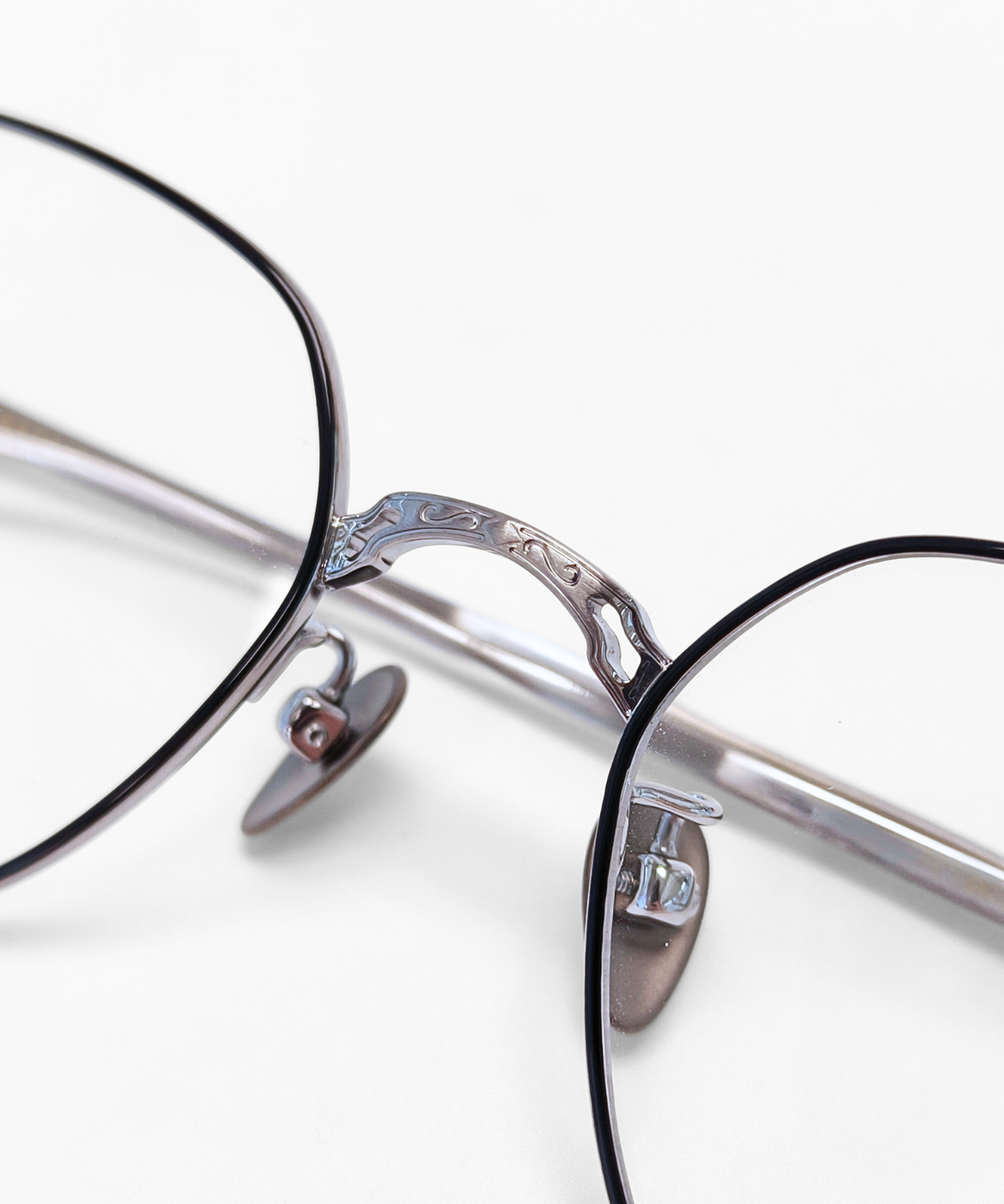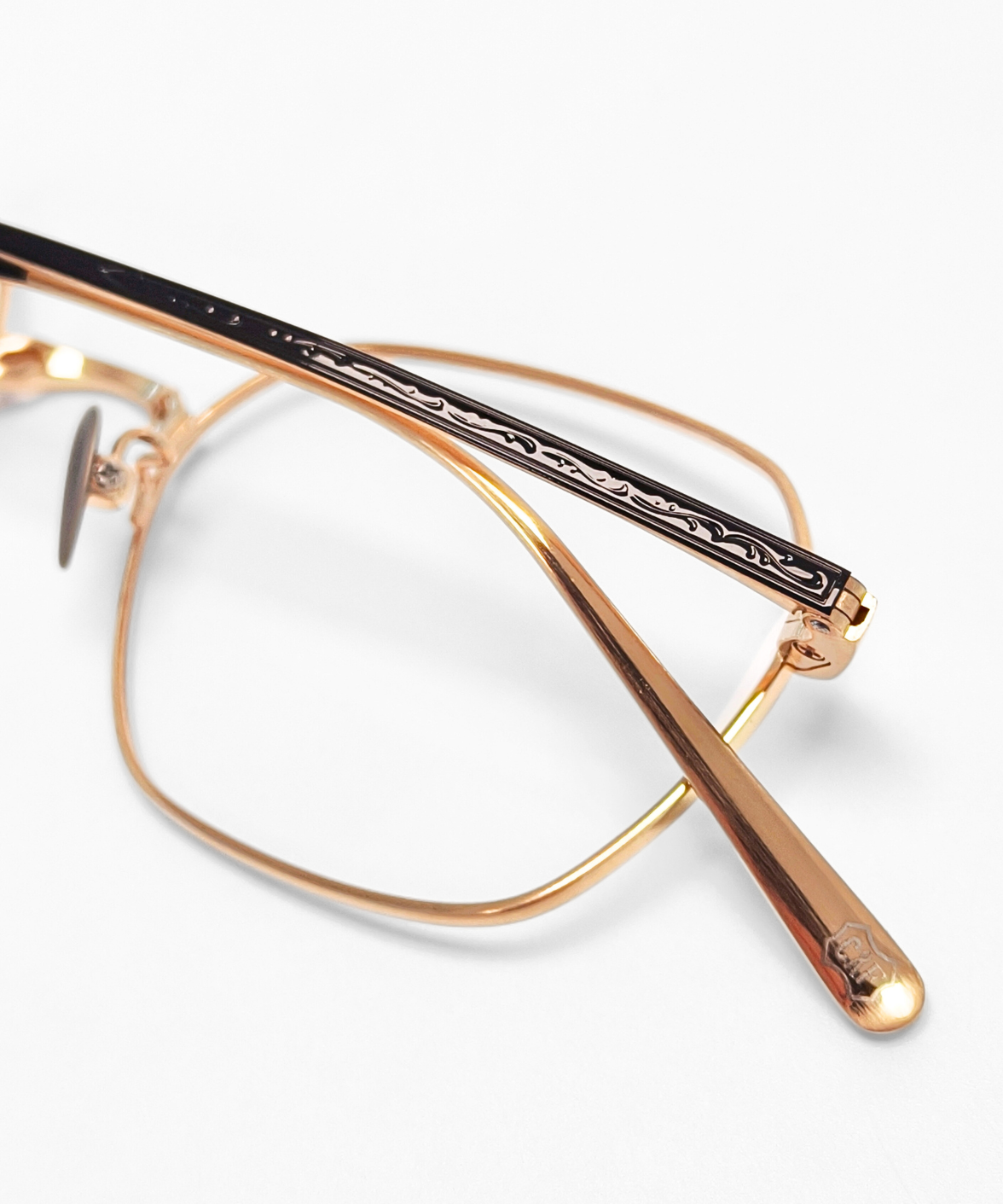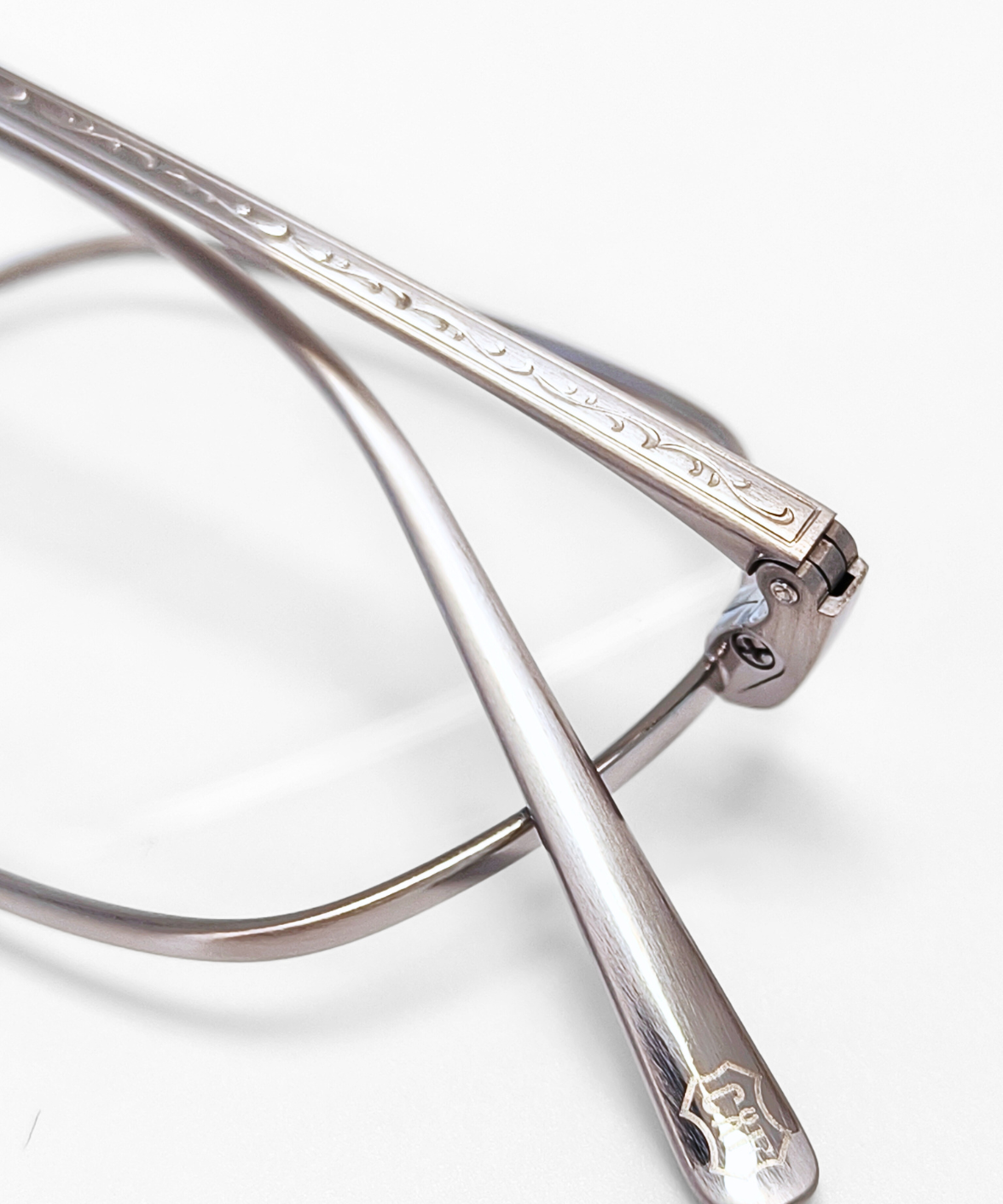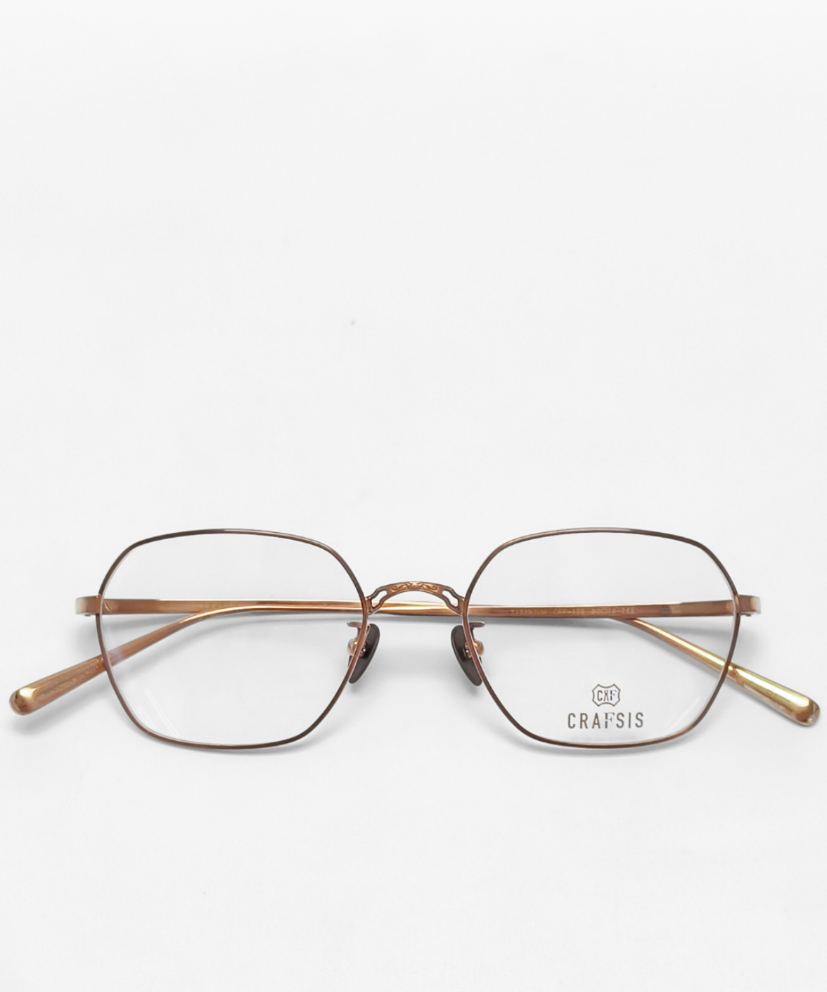 CRAFTSIS CRF-135 is a Japanese handcrafted geometric eyeglass frame in premium titanium. The hexagonal full-rim design combines originality with intelligent detailing, featuring classical engraved motifs on the bridge and temples that exude luxury. Available in hairline gold (C2) and black/silver (C6), the bicolor front and temples add a refined, sophisticated touch. Solid titanium nose pads ensure all-day comfort and stability, while the Crafsis logo is laser-engraved on the tip of the left temple, highlighting its exceptional craftsmanship.