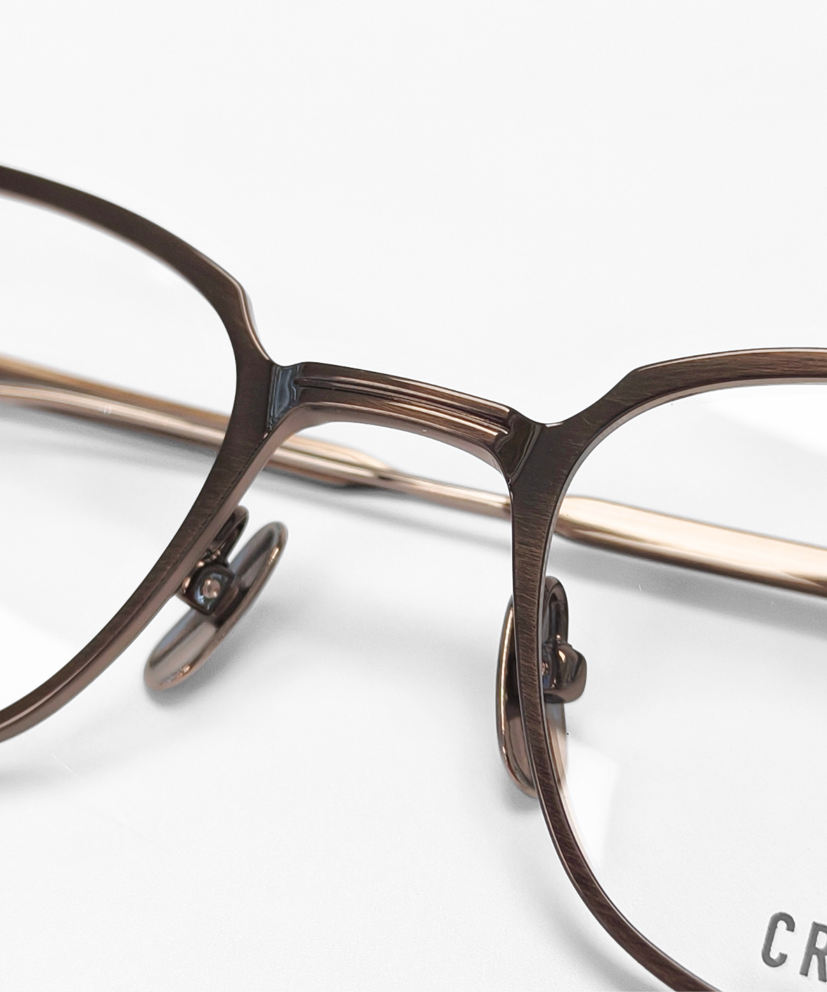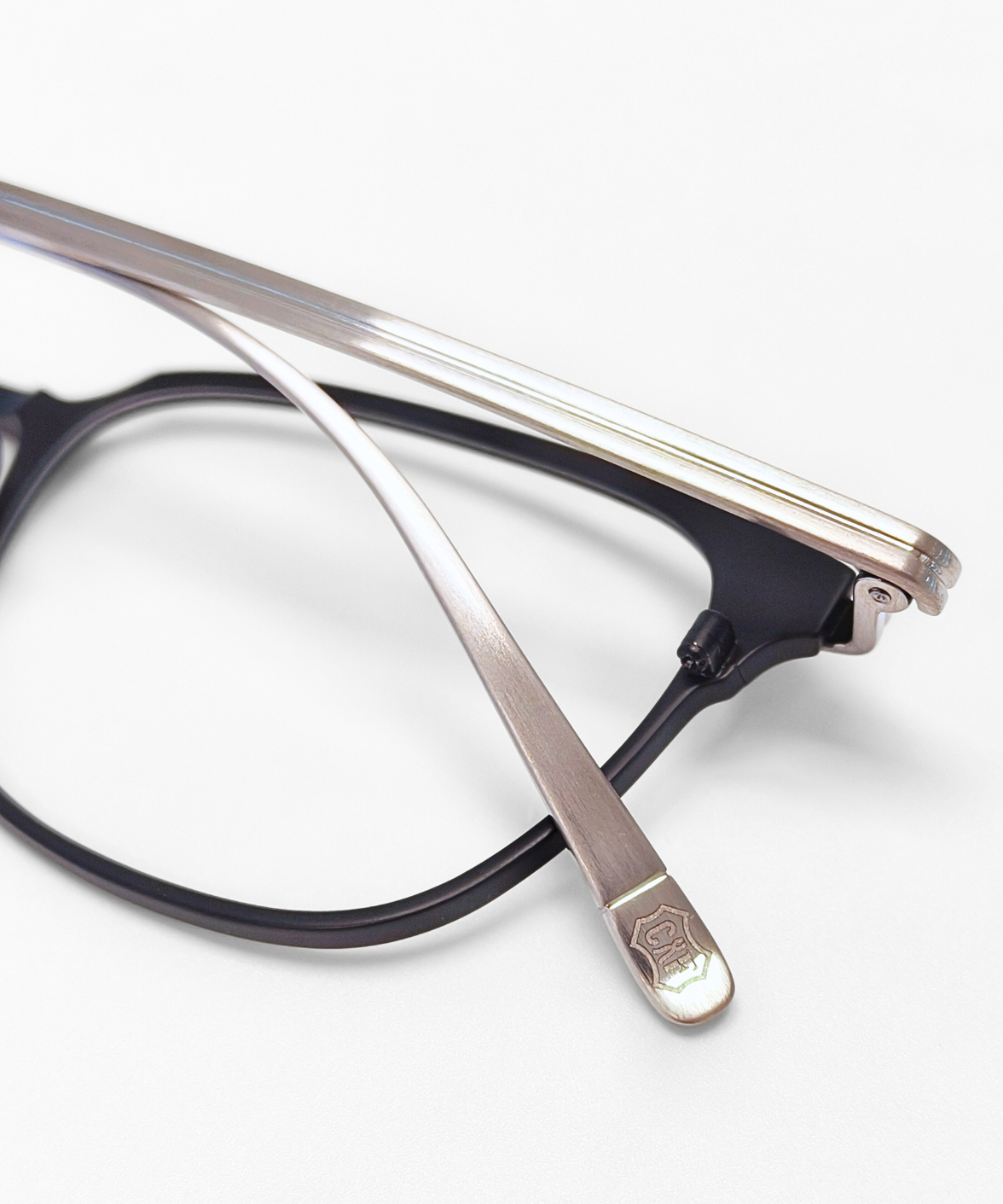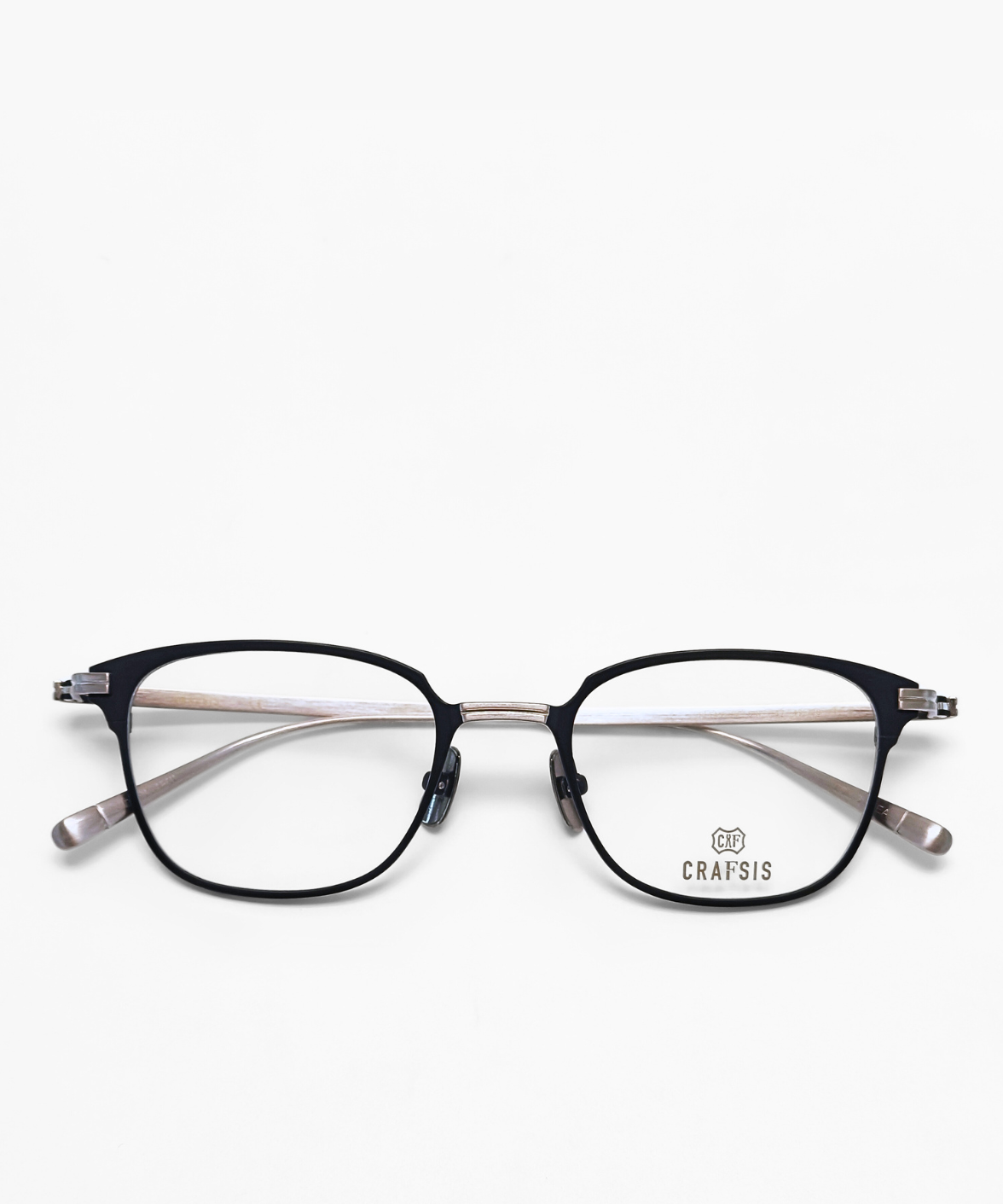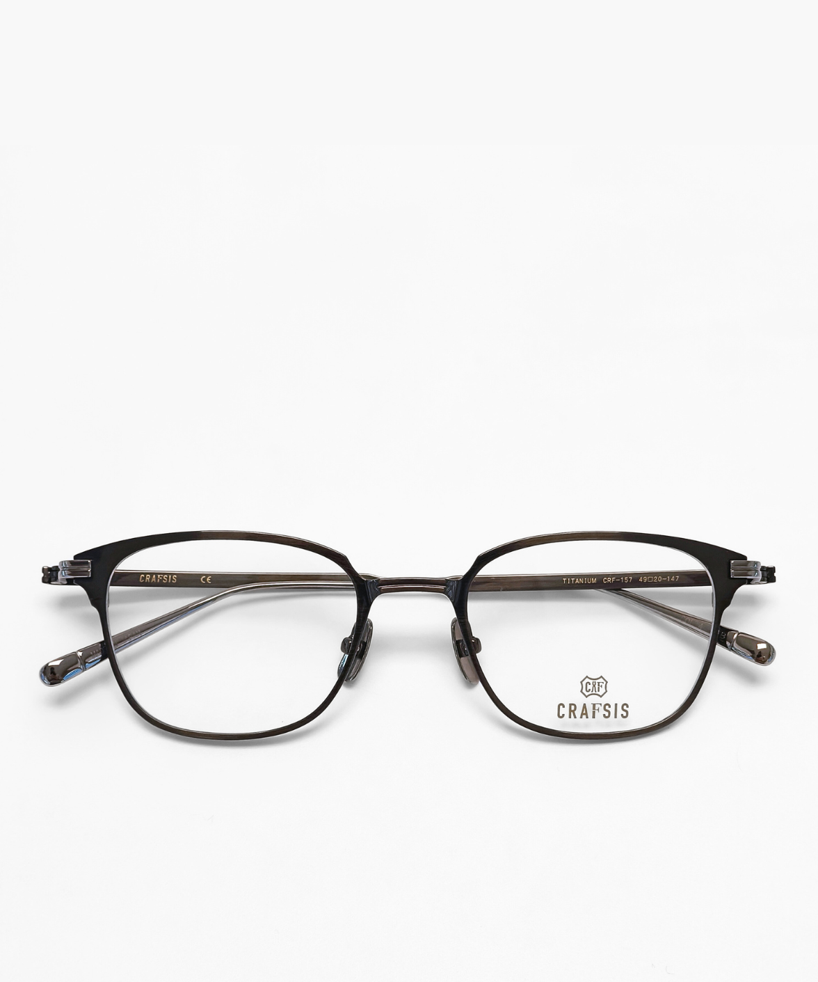 CRAFTSIS CRF-157 is a Japanese handmade browline full-rim eyeglass frame with a bold Wellington-inspired front. The bridge, hinges, and temples feature a subtle stepped design that adds a refined accent to the frame. Solid matte titanium nose pads provide both comfort and a premium tactile feel, while the integrated design ensures durability and stability. The Crafsis logo is discreetly laser-engraved on the left temple tip, highlighting exceptional Japanese craftsmanship and attention to detail.