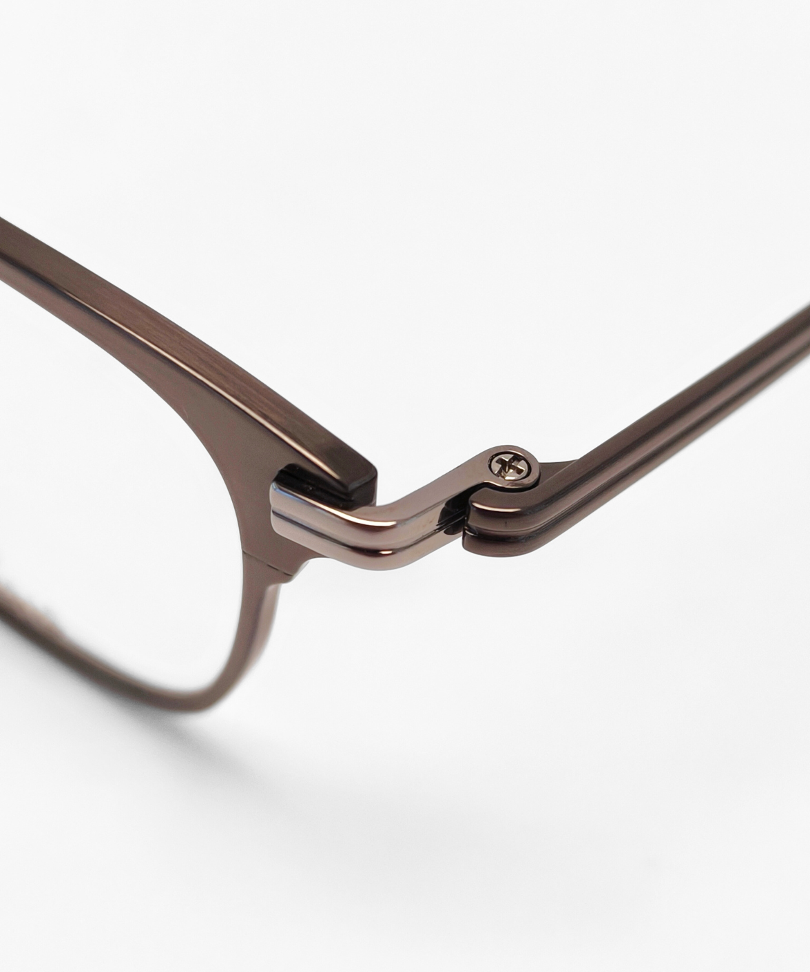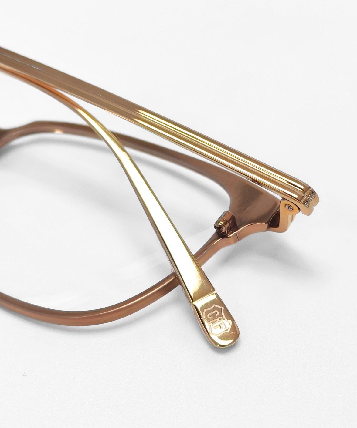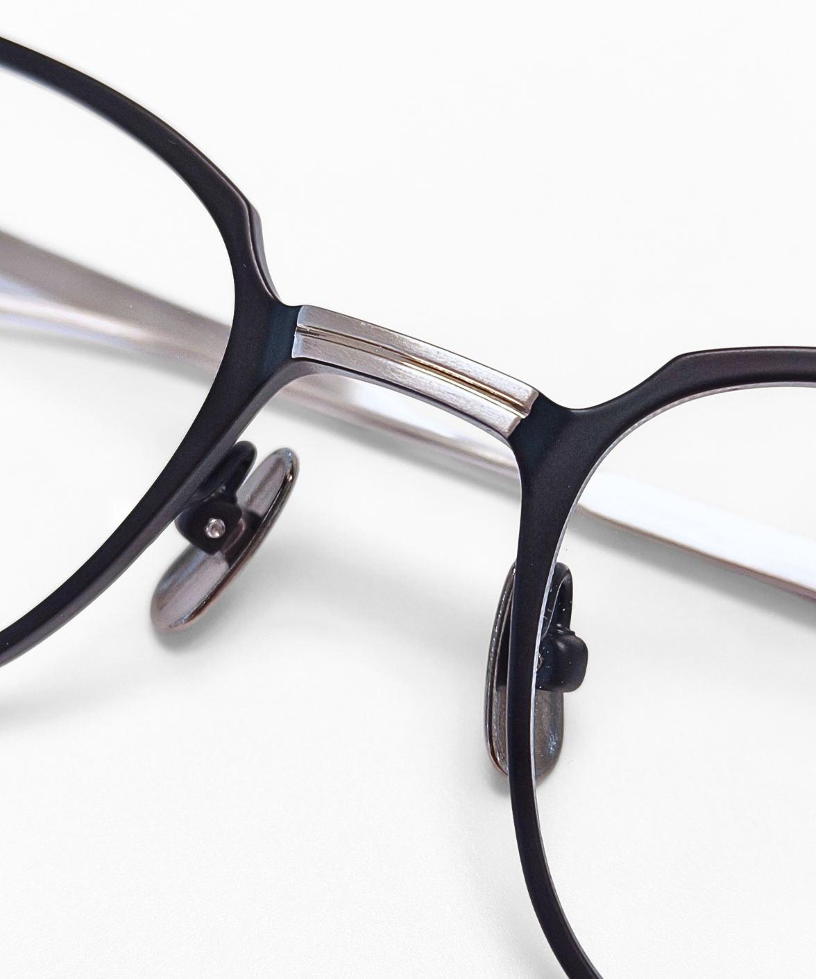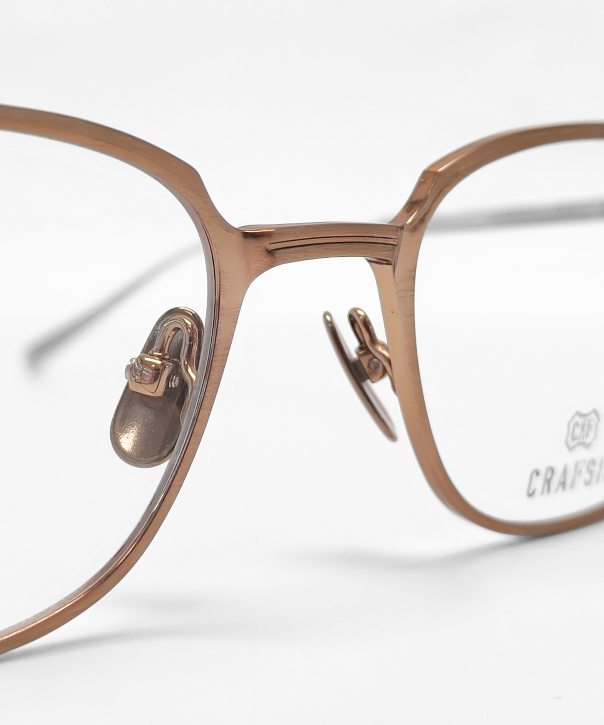 CRAFTSIS CRF-157 is a Japanese handmade browline full-rim eyeglass frame with a bold Wellington-inspired front. The bridge, hinges, and temples feature a subtle stepped design that adds a refined accent to the frame. Solid matte titanium nose pads provide both comfort and a premium tactile feel, while the integrated design ensures durability and stability. The Crafsis logo is discreetly laser-engraved on the left temple tip, highlighting exceptional Japanese craftsmanship and attention to detail.