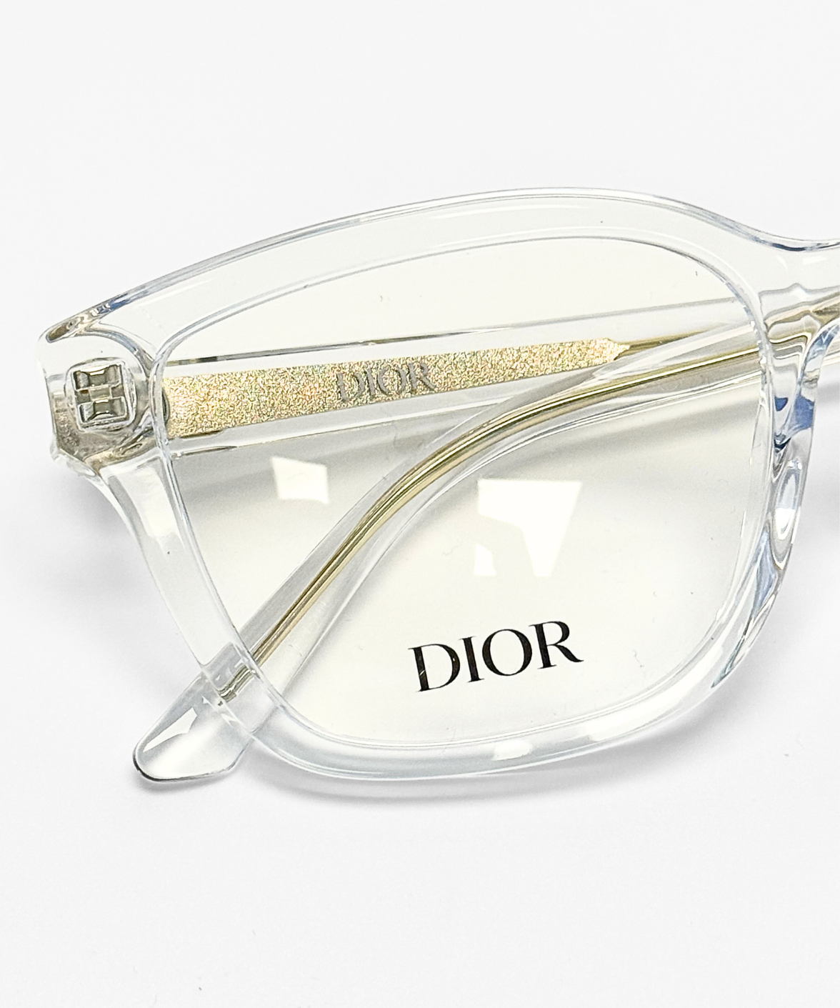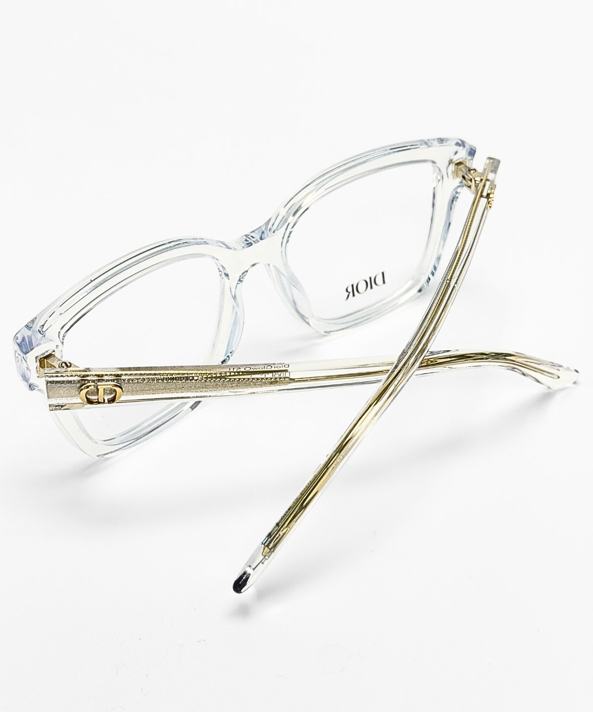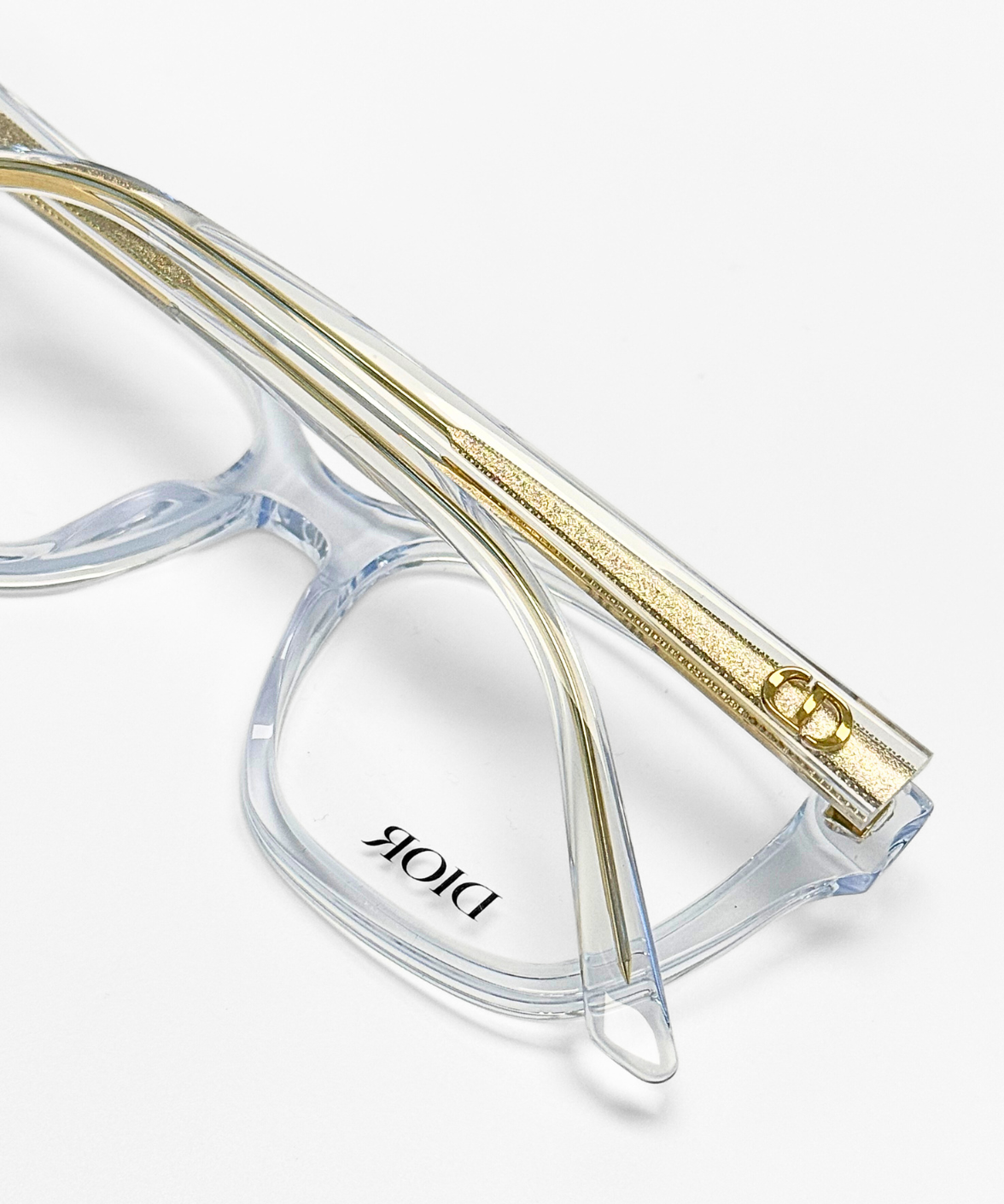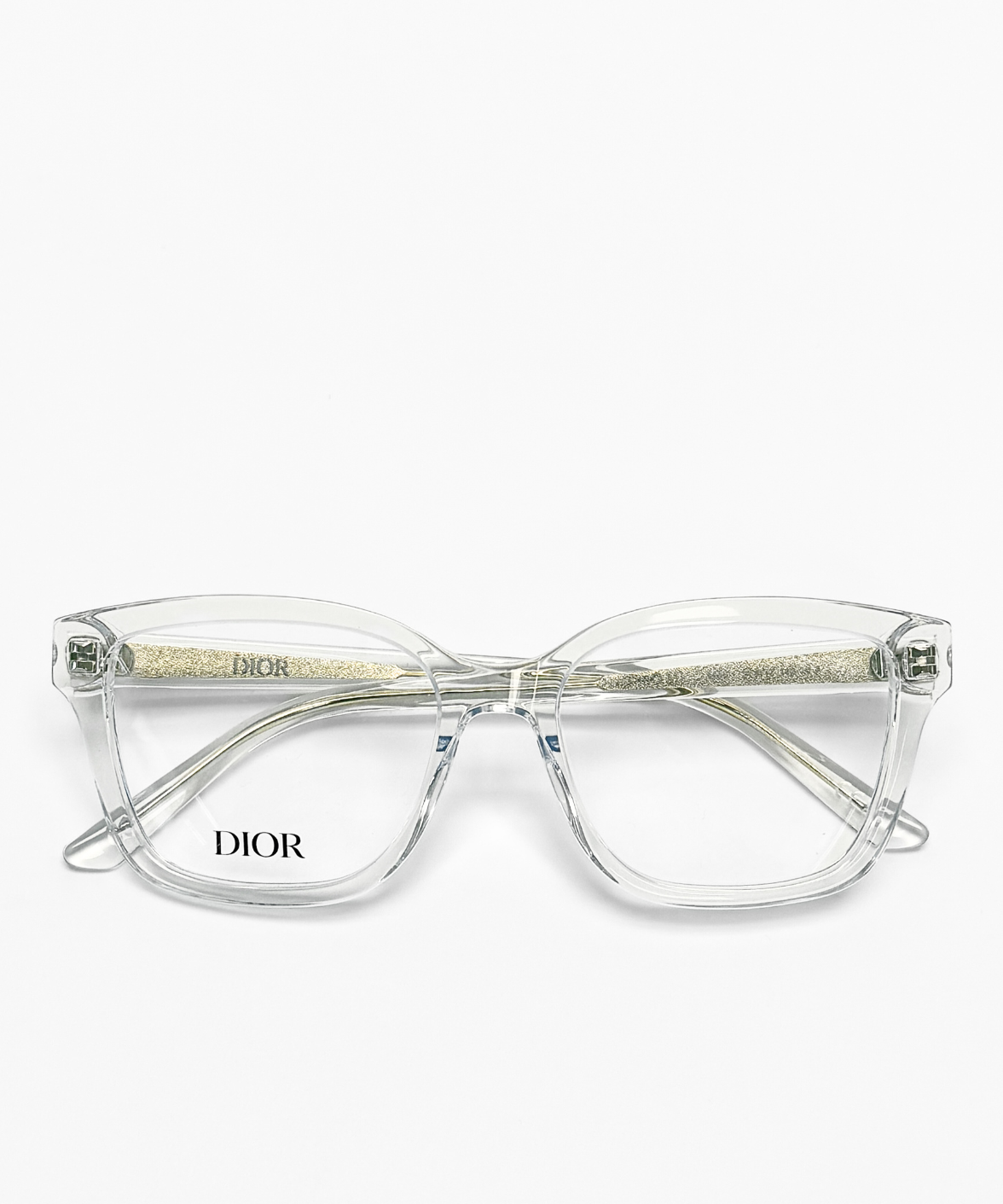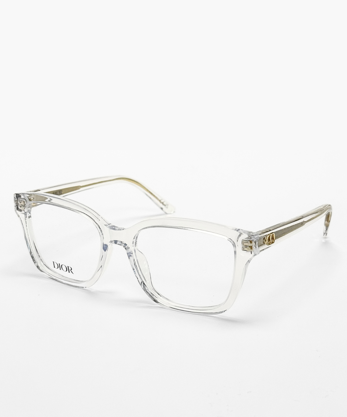 The DiorGlowO S1I eyeglasses feature a modern rectangular full-rim frame crafted from transparent acetate, offering a fresh, luminous look. Subtle gold accents are embedded within the temples, complemented by a refined gold CD logo, while adjustable nose pads ensure a comfortable fit. A seamless blend of contemporary style and Dior’s timeless elegance.