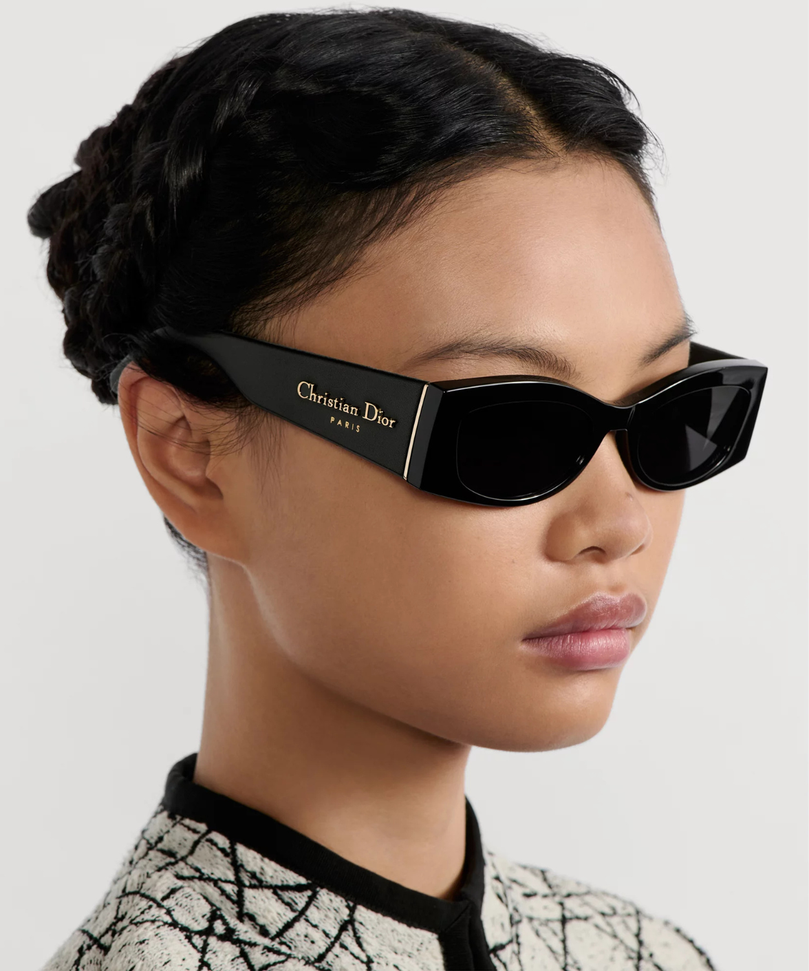 Signature details elevate the design: the temples are wrapped in black cowhide leather, accented with a gold-tone “Christian Dior Paris” logo, blending sophistication with modern luxury. A statement piece for women who value elegance and subtle detail in everyday style.