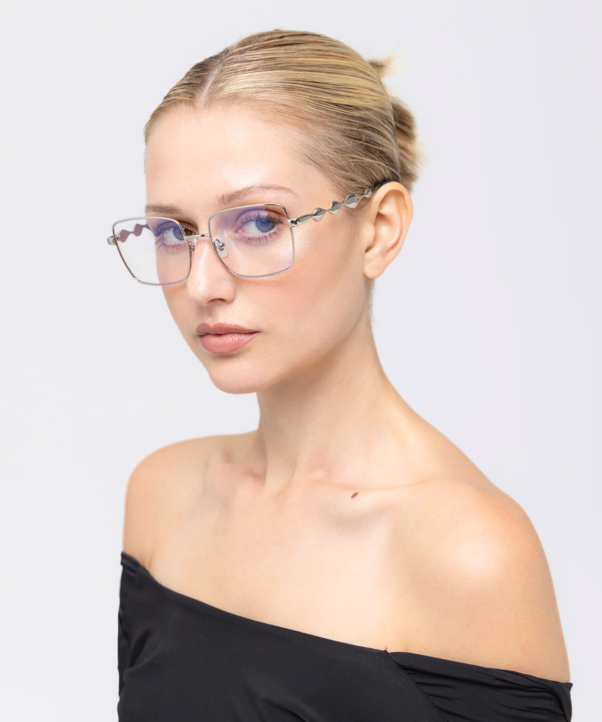 Fluid is a modern optical frame that blends softness and edge through a refined soft-square silhouette crafted in polished metal. The highlight of the design lies at the temples, where a sculpted 3D fluid detail adds movement, dimension, and a touch of wearable art.