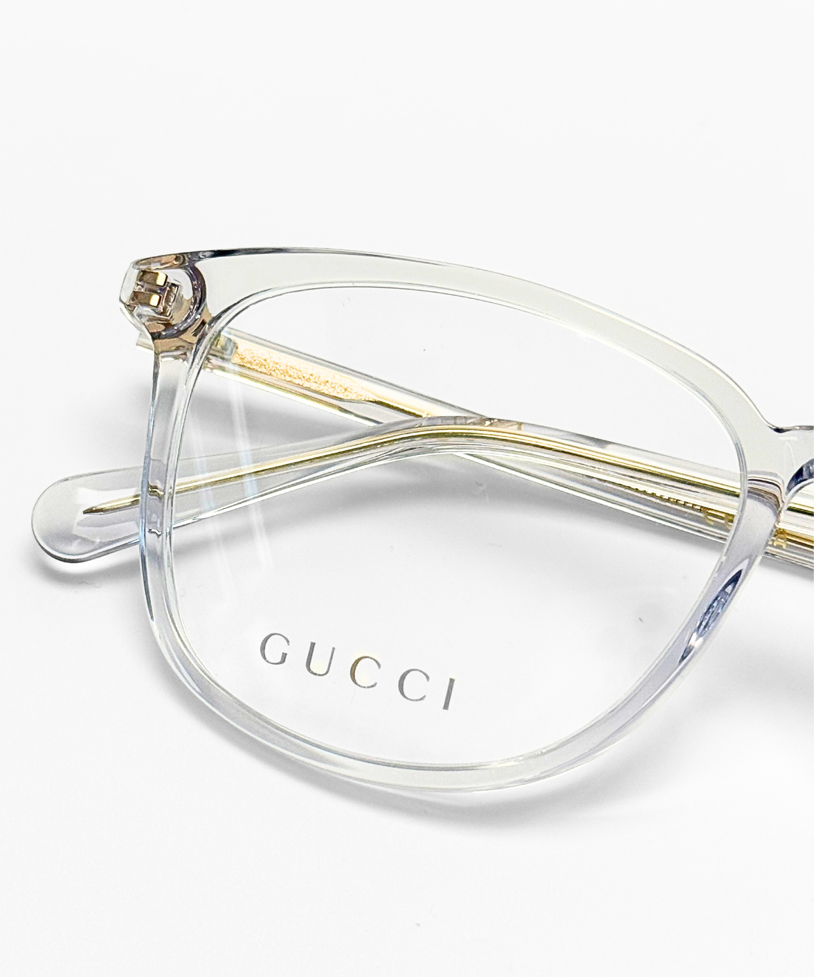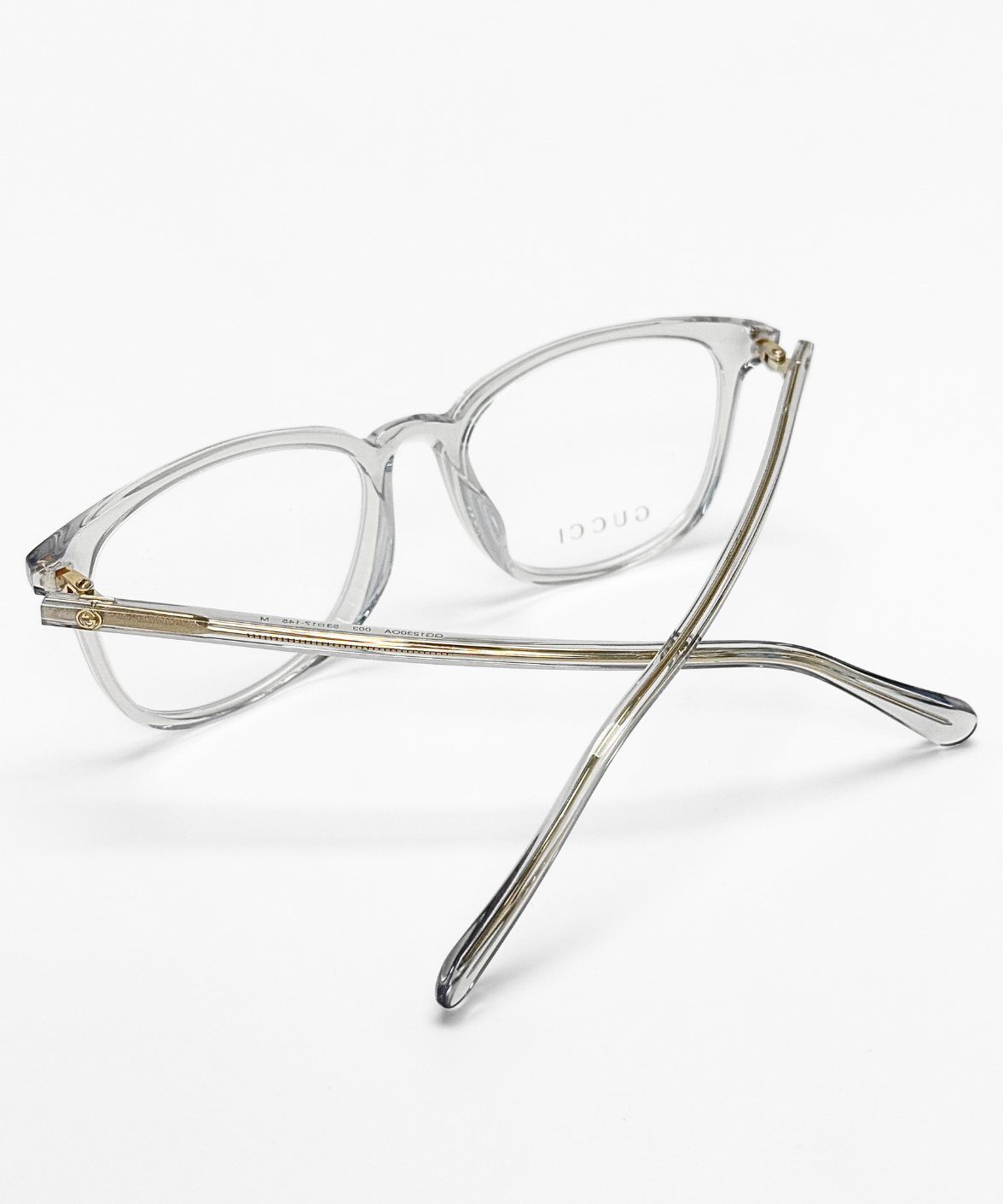 These Gucci transparent rectangle eyeglasses are crafted from lightweight acetate for a fresh and modern look. Featuring a full-rim design and reinforced nose pads, they provide extra support, making them suitable for a wider range of face shapes. Sleek, versatile, and effortlessly stylish.
