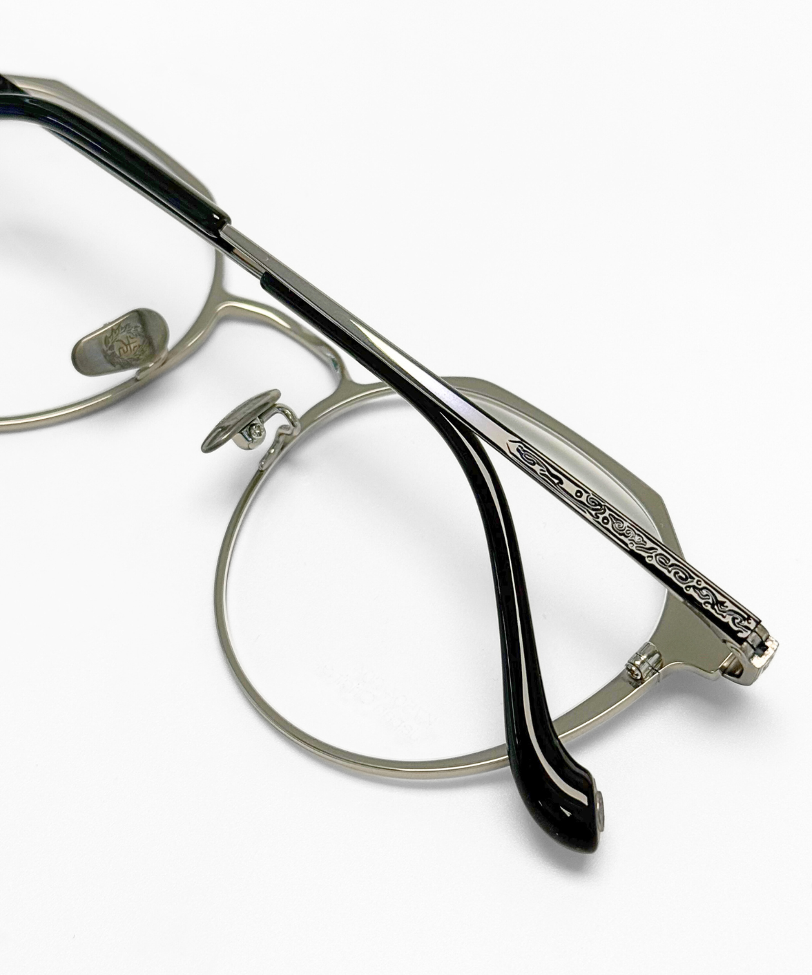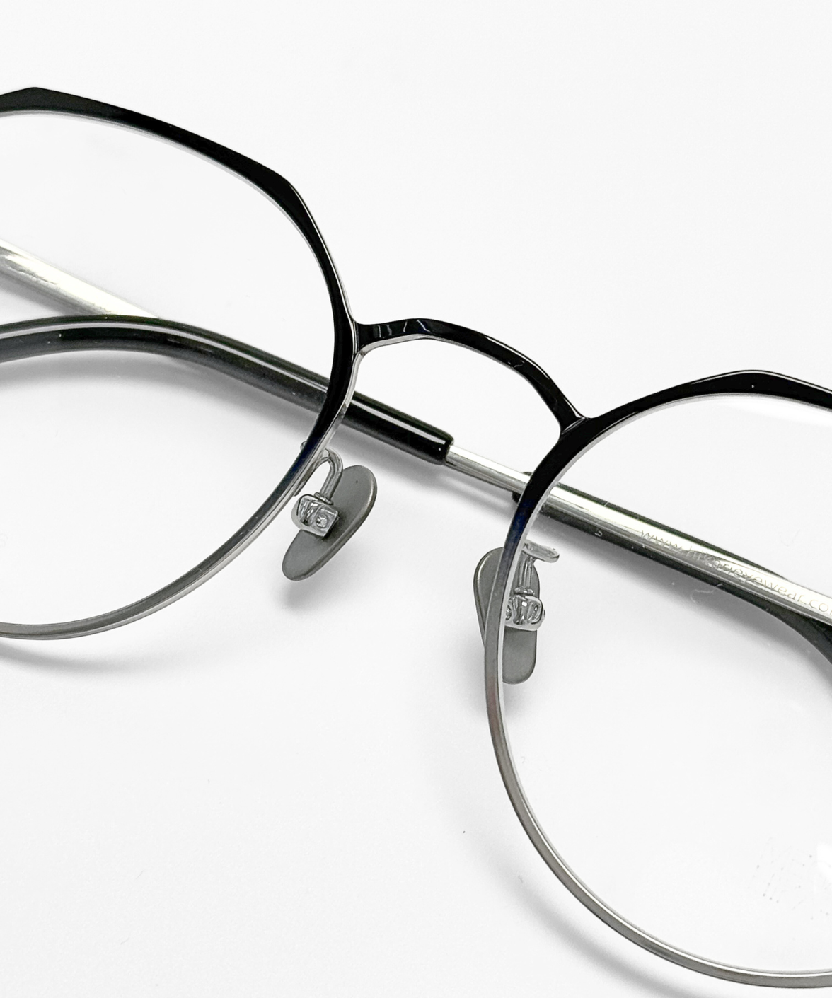 The K7504 from Megatec Hikari is a Japanese handmade titanium panto frame that fuses geometric design with artisanal precision. Crafted in Japan with a durable full-rim structure and adjustable nose pads, it offers both comfort and timeless style. Available in matte black, brown/gold, and blue/silver, this versatile frame balances modern sophistication with everyday wearability.