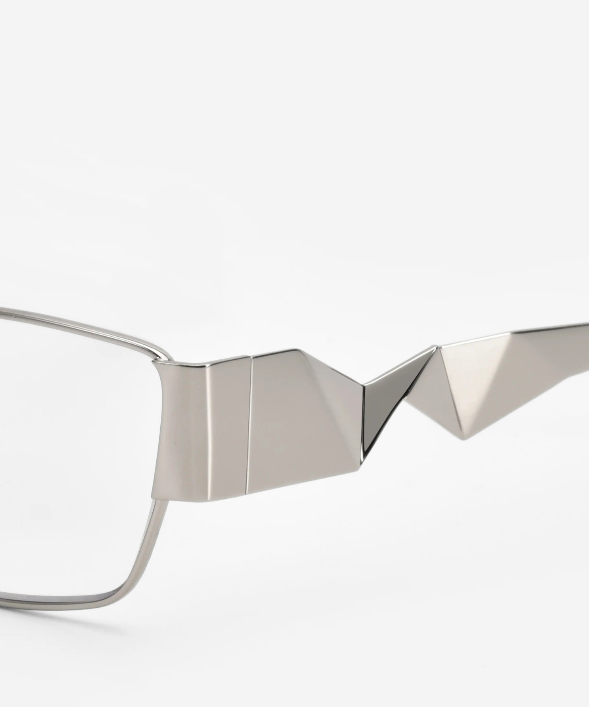 With each angled detail, Origami transforms simplicity into a wearable statement, reminding us that disruption can create beauty and redefine the idea of perfection. Crafted in palladium-plated stainless steel, the silver-toned frame carries a crisp, modern brilliance.