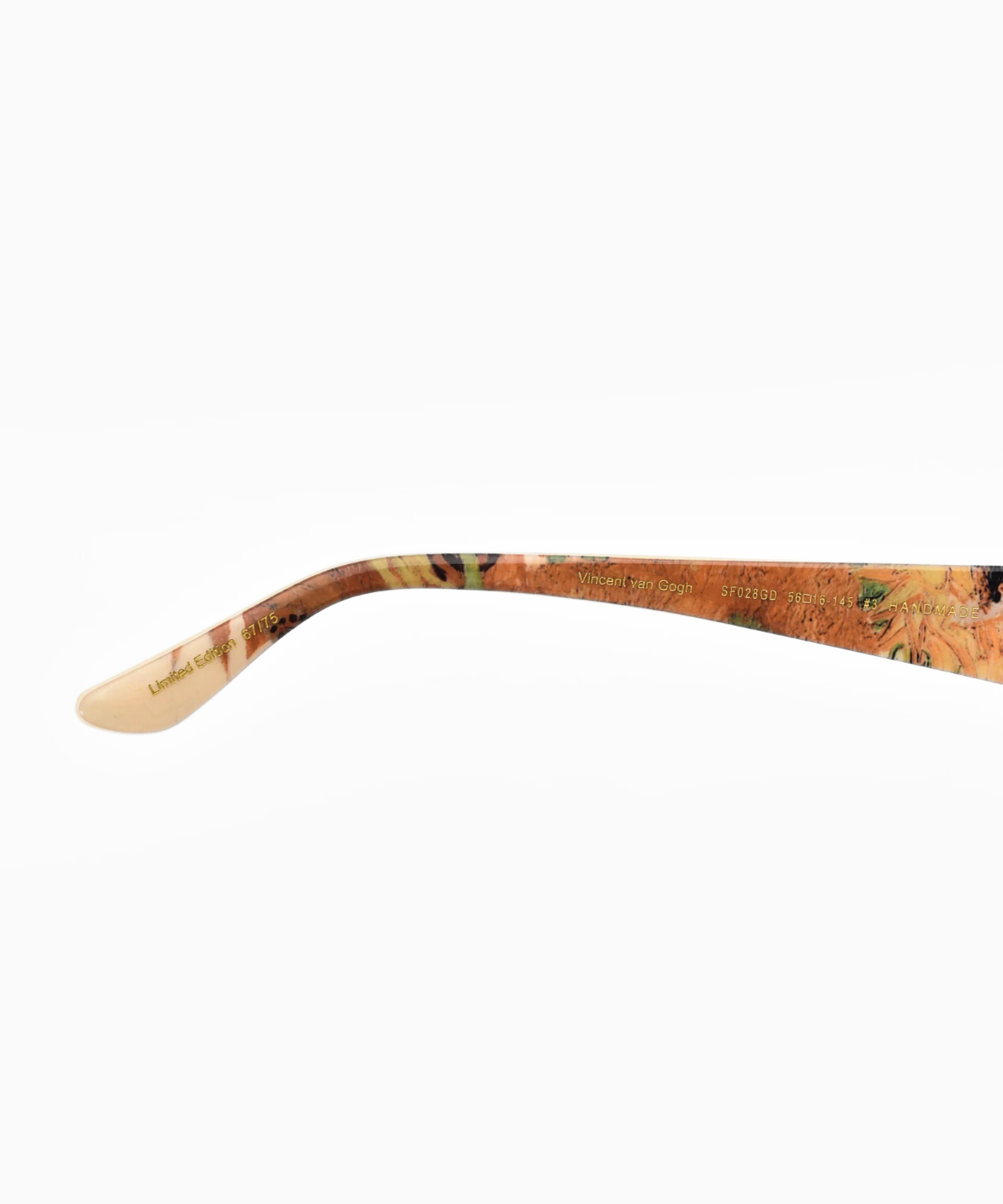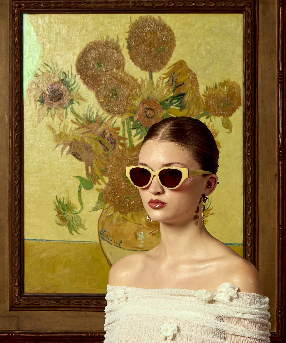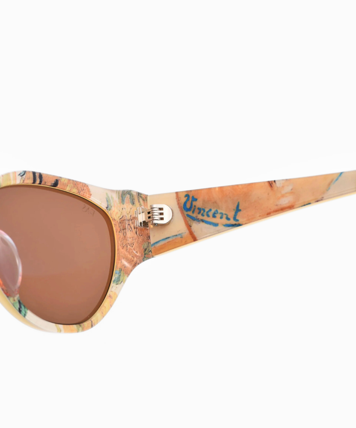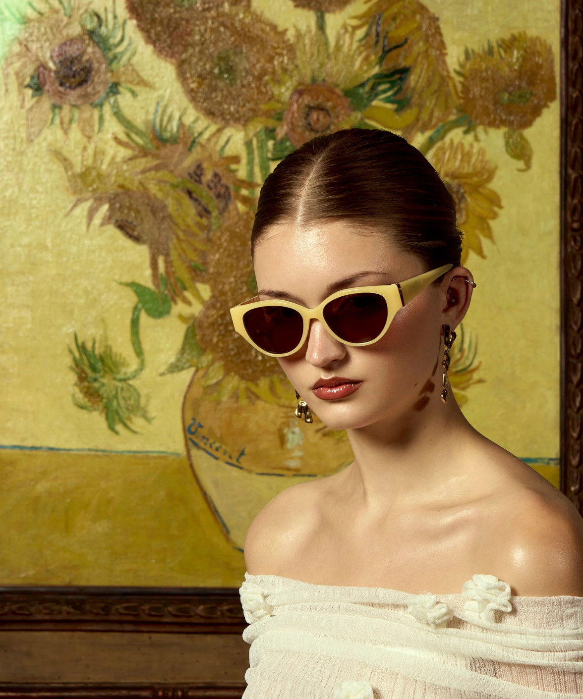 The Vincent van Gogh – Sunflowers Limited Edition sunglasses pay tribute to one of the most celebrated masterpieces in art history. Reimagining the classic cat-eye silhouette, this collector’s piece is sculpted from premium handmade acetate and refined with faceted detailing that echoes the texture and depth of brushstrokes.