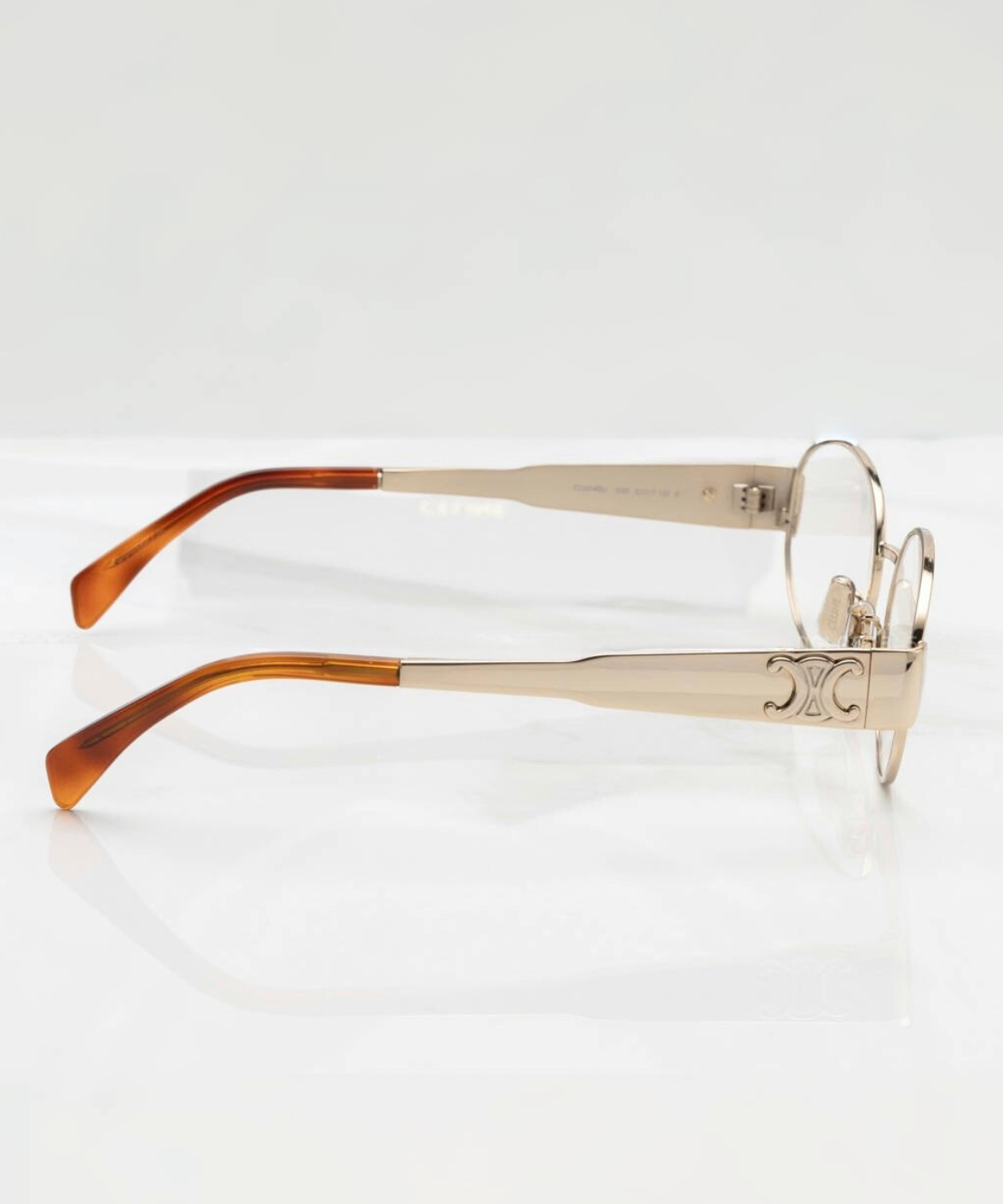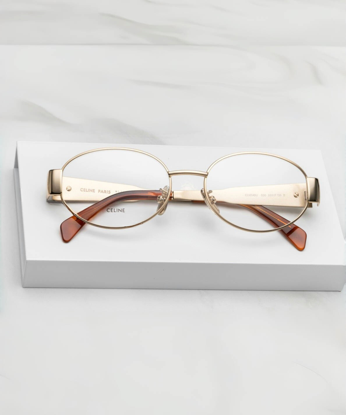 The CL50140U eyeglasses by Celine combine refined simplicity with timeless sophistication. Featuring a unique oval shape, these lightweight frames showcase the iconic Triomphe signature in relief on both temples, adding a touch of elegance. Made in Italy with exceptional attention to detail, they offer clean lines, subtle detailing, and high-quality materials, ensuring a polished appearance and all-day comfort.