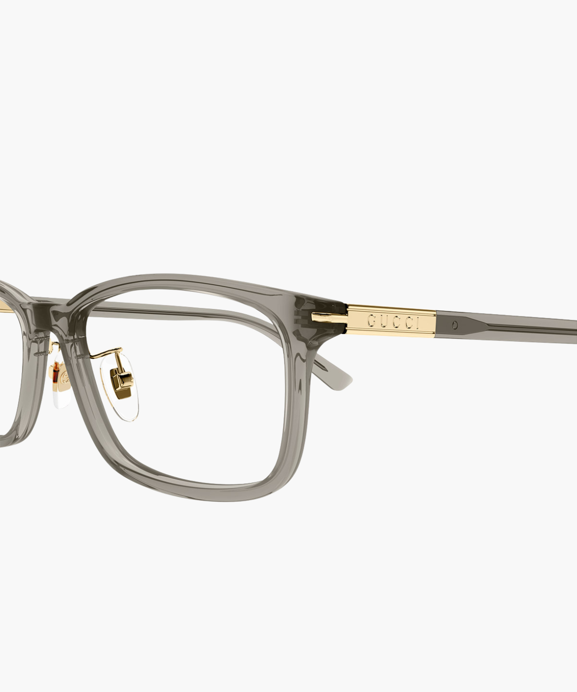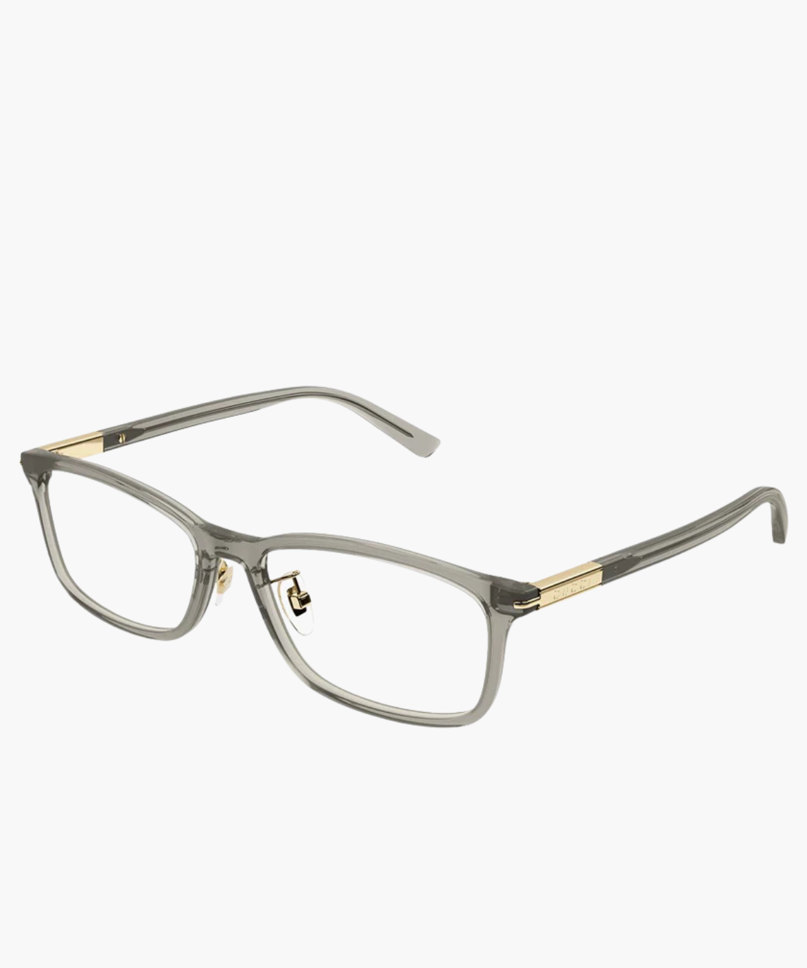 The GG1506OJ optical frame from Gucci embodies understated sophistication with its clean rectangular silhouette. Crafted from khaki-toned acetate, it offers a refined and versatile look suitable for any occasion. The full-rim design and adjustable nose pads ensure a secure and comfortable fit, while the subtle hue adds a touch of effortless elegance to everyday wear.