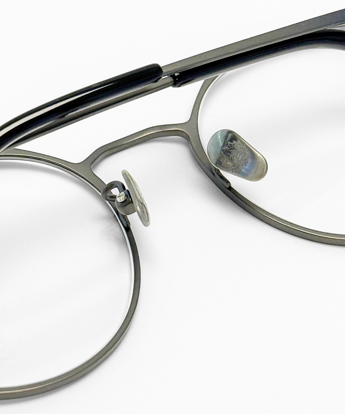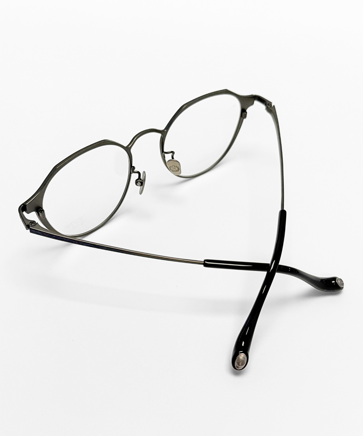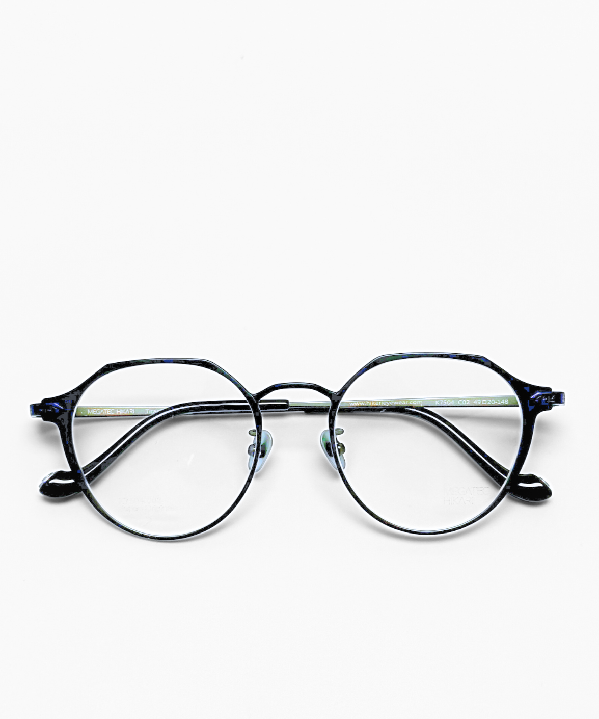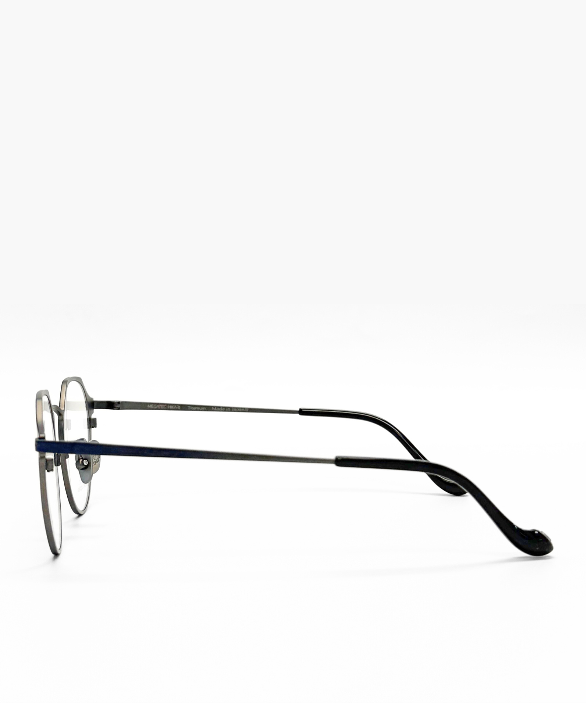 The K7504 from Megatec Hikari is a Japanese handmade titanium panto frame that fuses geometric design with artisanal precision. Crafted in Japan with a durable full-rim structure and adjustable nose pads, it offers both comfort and timeless style. Available in matte black, brown/gold, and blue/silver, this versatile frame balances modern sophistication with everyday wearability.