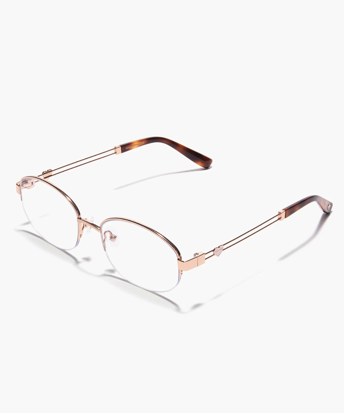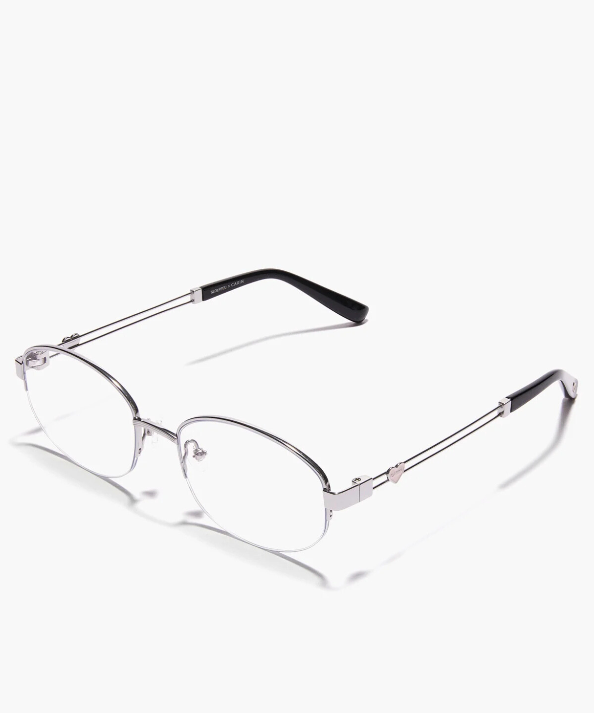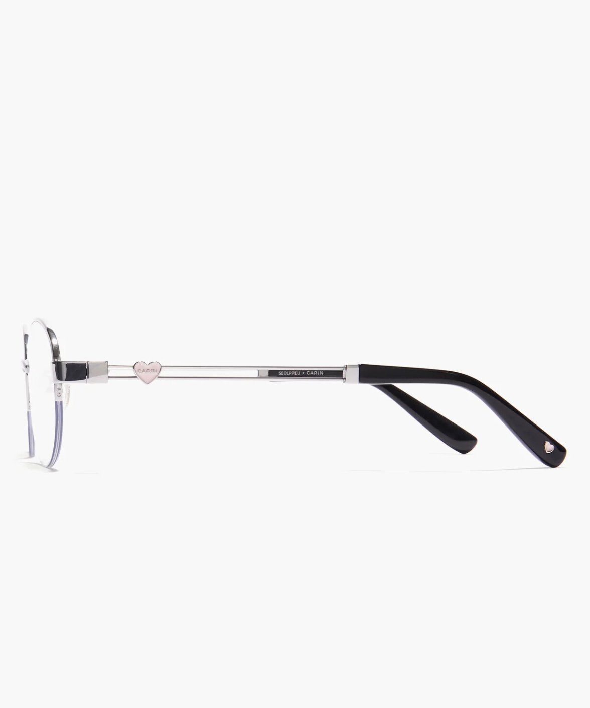 LuvGlaze is a collaborative eyewear collection by CARIN and SEOLPPEU, combining CARIN’s delicate sensibility with SEOLPPEU’s charming mood. The design features a modern oval-shaped semi-rimless frame highlighted by heart symbol accents on the temples, bringing a trendy, stylish, and playful character. Perfect for those who want to express individuality while keeping a chic and contemporary look.
