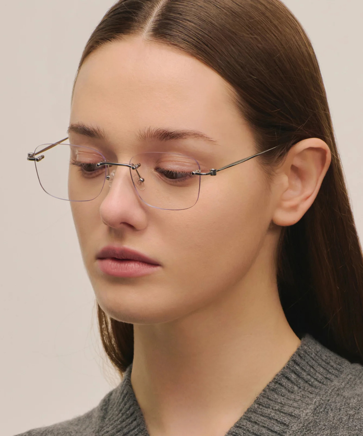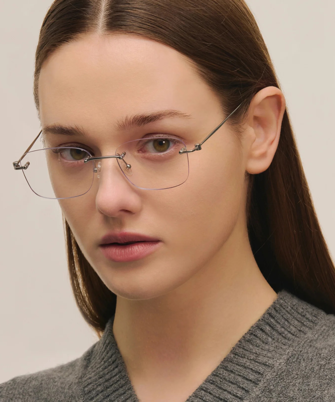 Sienna+ S are sleek rimless square eyeglasses designed with a modern narrow frame. The dual lining on the temple tips ensures a secure, slip-resistant fit for all-day comfort. Equipped with a blue light filter, these glasses combine style and functionality to protect your eyes during screen time.