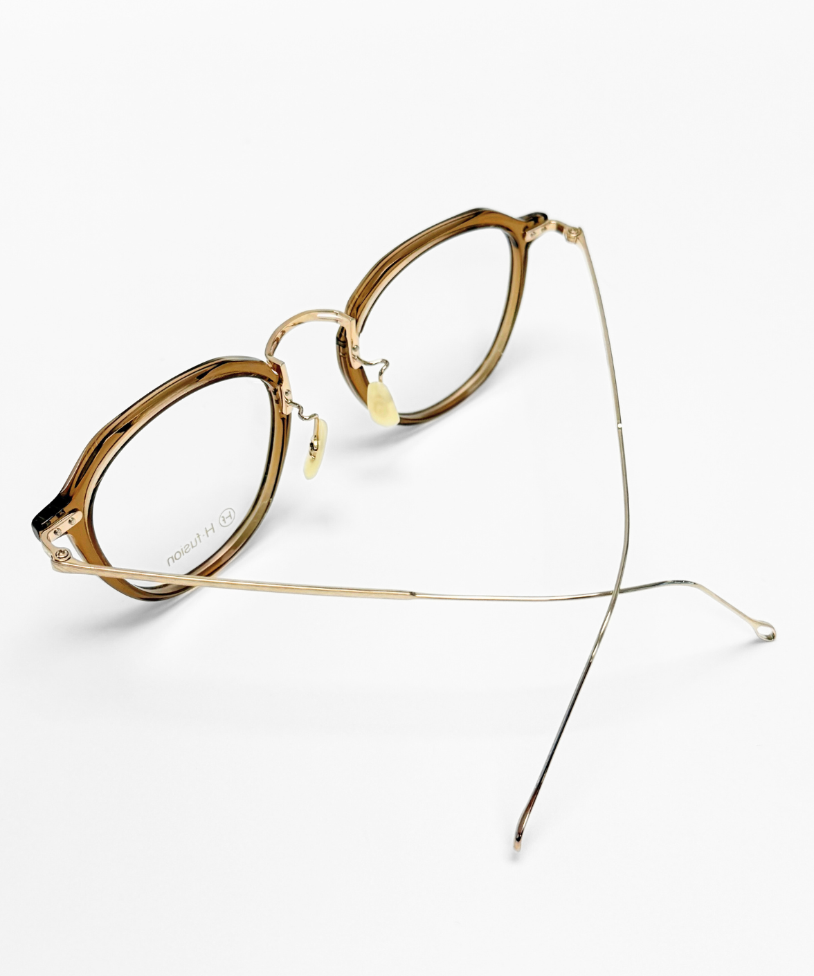 A Crown Panto combination frame with translucent acetate rims, radiating a refined elegance. The soft, clear tones enhance a sense of freshness and add a luminous glow to your complexion. Designed with a delicate aesthetic, this frame beautifully captures a feminine charm.