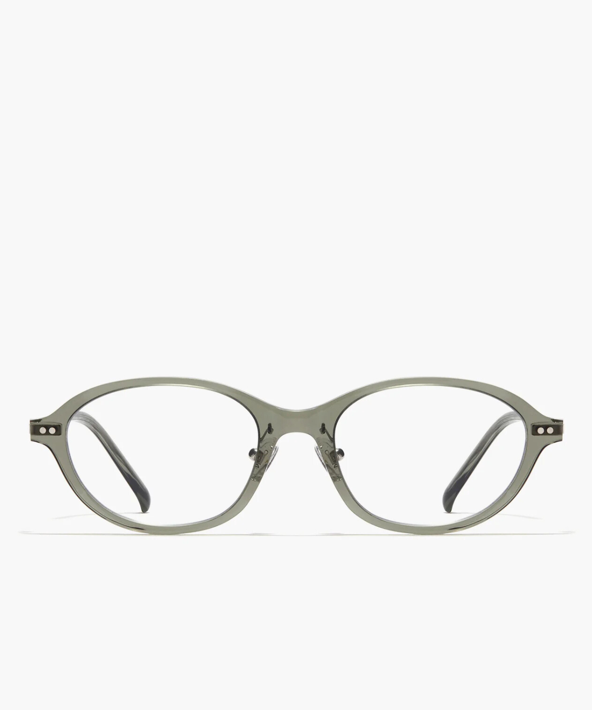 The Carin Ronenn R eyeglasses feature a soft oval silhouette with a subtle butterfly shape, offering a refined and elegant look. Crafted with a lightweight titanium structure and finished with adjustable nose pads, the full-rim design provides lasting comfort and a secure fit. The gentle green tone adds a quiet sense of character while remaining easy to wear.